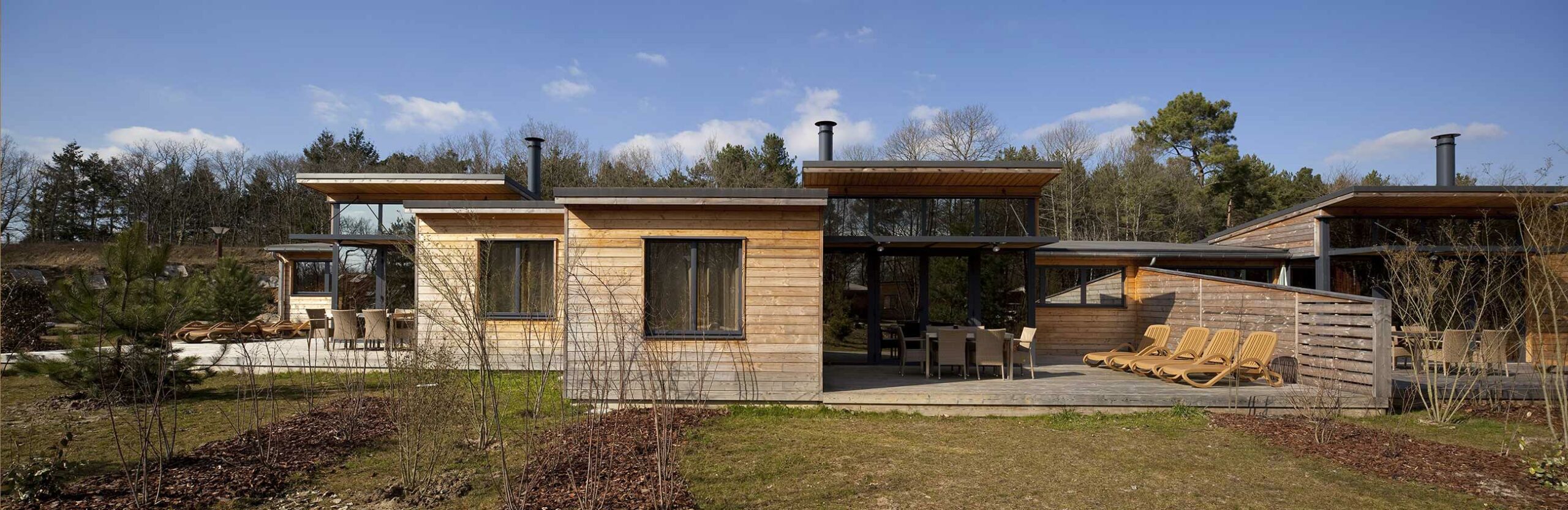 The forest of the Hauts de Bruyères domain is an architecture in itself. In this context, the architect must integrate as respectfully as possible the new cottages into this « natural architecture » so as to preserve the beauty of the environment. Therefore, we have designed simple and practical houses – avoiding hallways and complicated circulation – and we have used wood as the primary material, especially for the facades. We have created a space in harmony with the surrounding landscape by using large bay windows for the public living spaces.